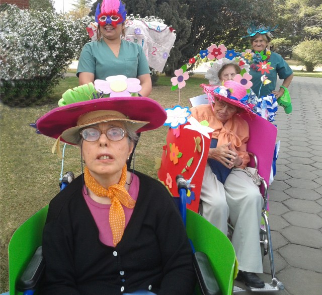 Después de una larga y dedicada preparación, se pudo disfrutar del colorido trabajo en la Fiesta. Luego de varias semanas de elaboración de trajes, adornos y distintos elementos, confeccionados en Laborterapia, llegó la Fiesta de la Primavera, en la que se eligieron al Rey (Raiden, Aldo), la Reina (Chavez, Amanda) y las Princesas (Achaval, Guillermina y Cavaller, Ángela) para luego dar paso a un desfile de disfraces, teniendo una participación especial todos los residentes que se encuentran en sillas de ruedas o andadores, acompañados por sus cuidadoras.