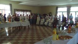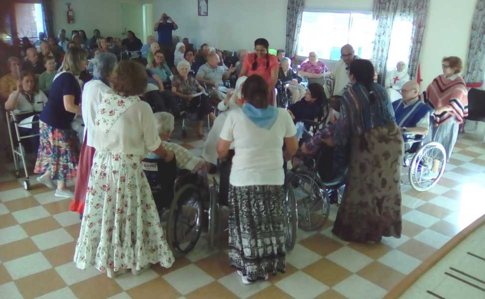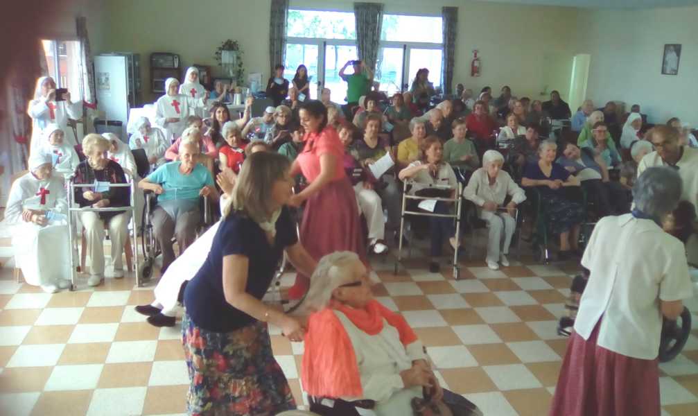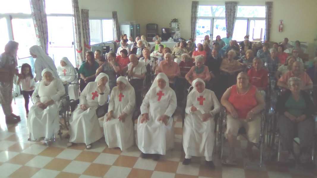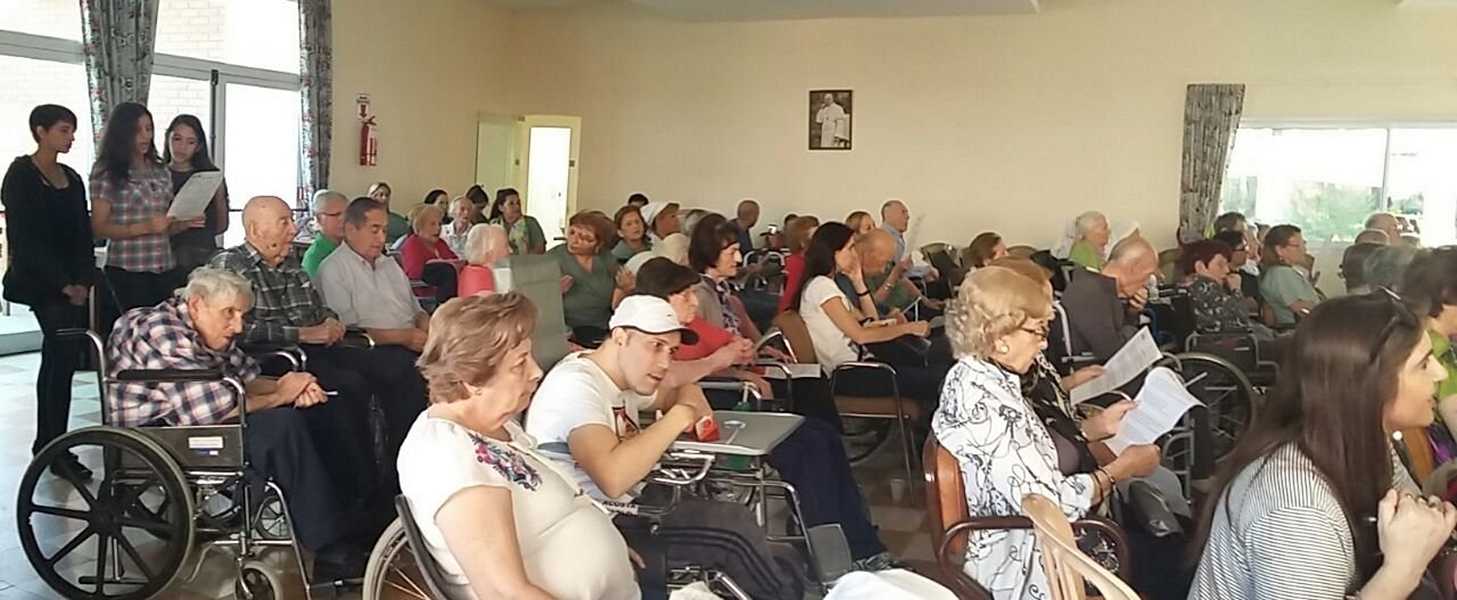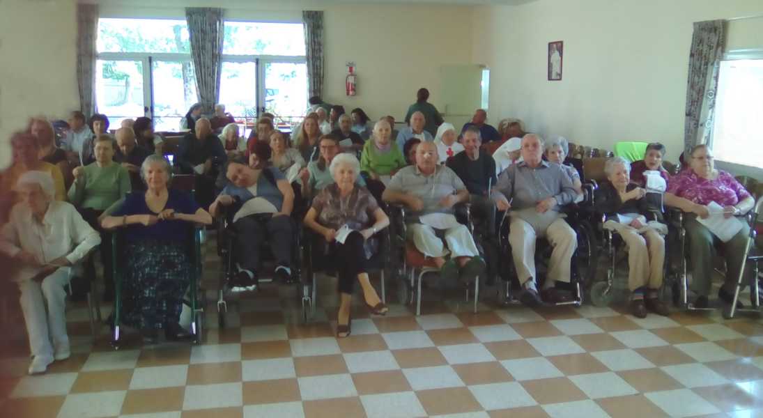 Desde todos los pisos, comenzaron a llegar los residentes, religiosas, personal y familiares al salón.