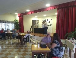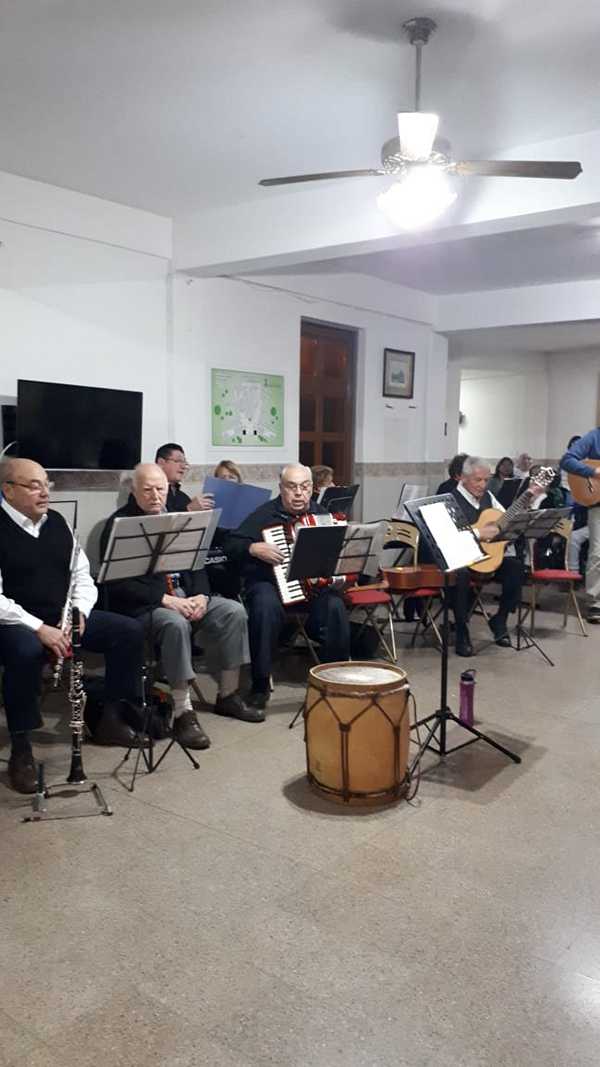 Como argentinos, revalorizamos nuestras costumbre, música y danzas folklóricas. La convocatoria fue a las 17 hs, en el salón del Hogar. Allí los Sres. Gaspar Ferrer Deheza y Oscar Sampietro, fueron los encargados de entregar unas cintas argentinas a cada uno de los participantes.