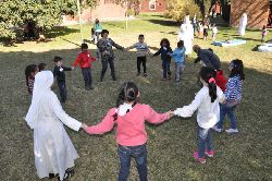 El grupo de los chicos de 6 a 8 años (16 niños), realizaron distintos juegos con pelota, latas, colchones, rondas, etc, coordinados por Sor Johana y la Trabajadora Social.