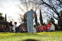 Luego, se trasladaron hasta el quincho, donde el Profesor César, luego de saludarlos, comenzó a realizar algunas actividades grupales, haciendo cantar, palmear y bailar a los presentes.