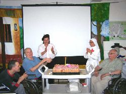 Al cierre, las Hermanas de la Comunidad, fueron entregando una caja (confeccionada y decorada por los residentes en Laborterapia) y diversos juguetes, finalizando de esta manera una tarde de esparcimiento y mucha alegría. |